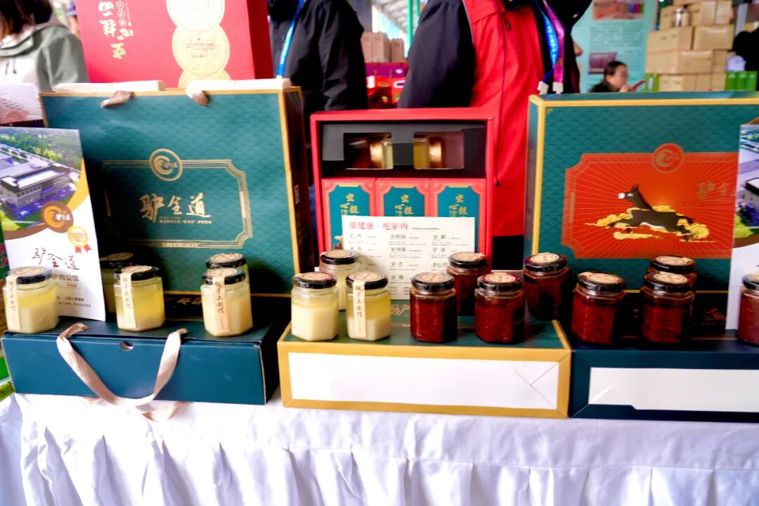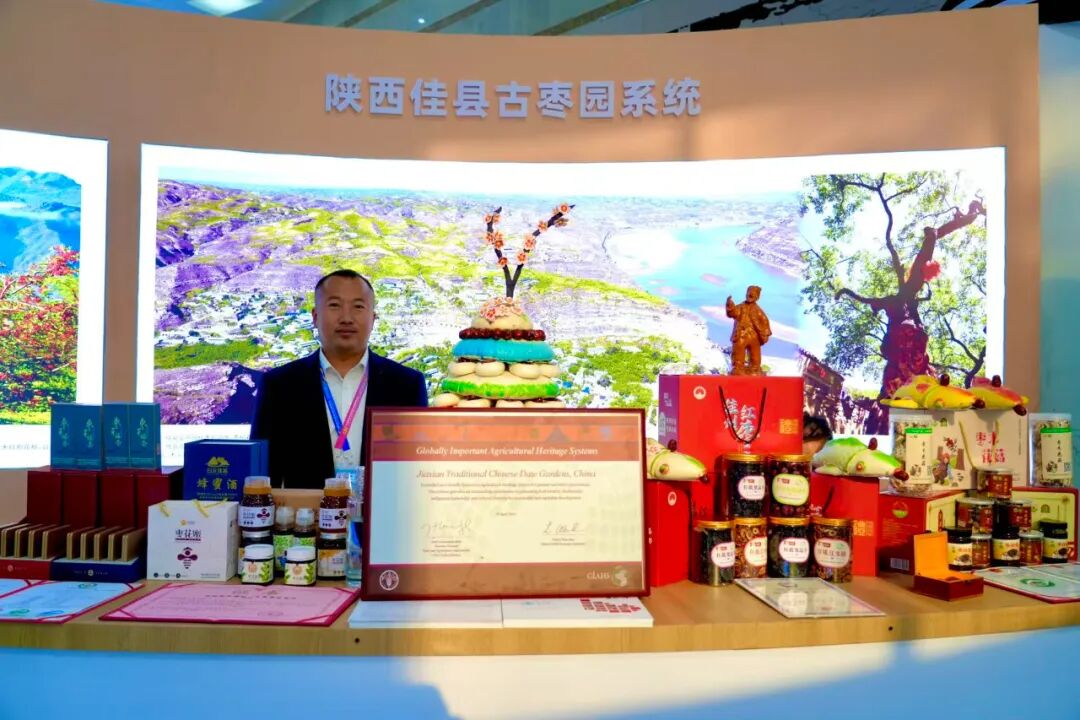佳县展区位于陕西特色现代农业馆(C馆)广场大棚区,总面积60平方米,吸引了23家本土企业参展。展览以“有机枣都 佳品飘香”为主题,展区中心借助电子屏幕循环播放千年古枣园系统、高粱全产业链、科技创新及招商引资等宣传视频;展区内部陈列着红枣、高粱、手工挂面、红薯、粉条、小杂粮、驴肉、红枣羊肉等名特优新农产品。凭借现场展示与品尝体验等丰富多样的形式,佳县展区内人气旺盛,各类特色农产品吸引了大批客商与游客驻足咨询、品鉴。