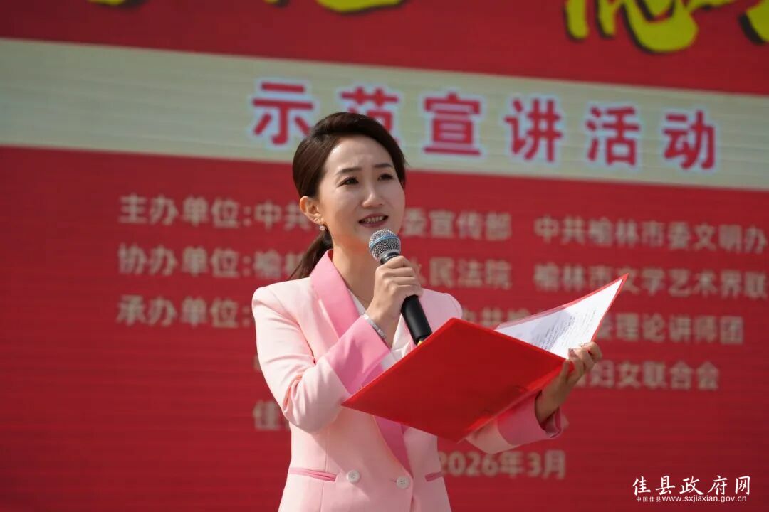 3月26日上午,由市委宣传部、市委文明办主办的“崇法尚礼 德润榆林”示范活动走进佳县,以“理论+文艺+服务”的生动形式,整合全市优质宣讲资源与文艺力量,将党的创新理论、法治精神与文明新风送到群众家门口,为佳县群众献上一场兼具思想性与观赏性的宣讲盛宴。