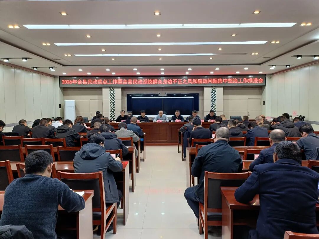 为进一步压实工作责任、提升服务质效,纵深推进全县民政系统群众身边不正之风和腐败问题集中整治,助力全县民政事业高质量发展,3月20日,2026年佳县民政重点工作暨民政系统群众身边不正之风和腐败问题集中整治工作推进会召开。县政府党组成员、二级调研员李跃进出席会议并讲话。县纪委监委派驻县民政局纪检监察组有关负责同志、县民政局相关负责人、局机关工作人员、各区域敬老院负责人、各镇(街道)镇长(主任)、民政办主任参加会议。