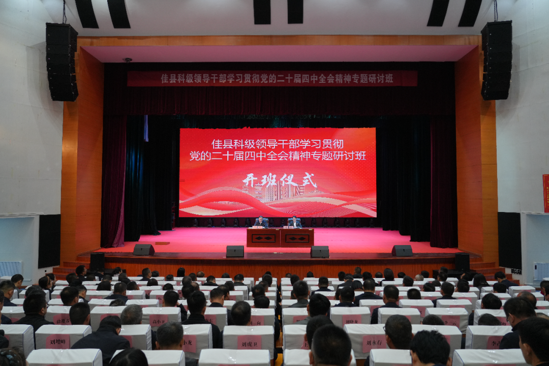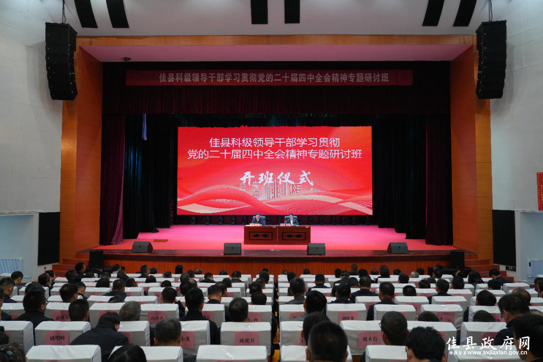 4月8日,佳县科级领导干部学习贯彻党的二十届四中全会精神专题研讨班在东方红大剧院开班。县委副书记、县长高登科作专题辅导,县委常委、组织部部长、党校校长姜婧妮主持开班仪式。