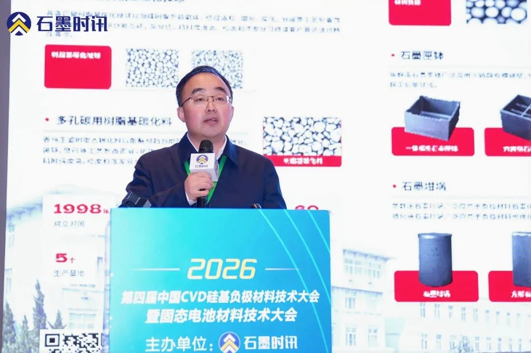 会上,高登科发表题为“红色硅谷 与佳相约 能聚未来”的主旨演讲,向与会专家、企业家推介佳县硅基产业发展优势与合作方向。他指出,佳县发展硅基产业拥有得天独厚的原料优势。链主企业陕西有色天宏瑞科建成国内最大、全球领先的硅烷气生产基地,2025年出货量达5550吨,国内市场占有率37%,全球市场达30%。特别是其“点对点、隔墙送气”的供气模式,大幅降低了下游企业生产成本,为硅碳负极产业化提供了最稳定、最经济的原料支撑。目前,榆佳经济技术开发区已吸引物科金硅千吨级硅碳负极项目建成试产,樾达电子特气等下游项目相继落地,硅基循环经济产业园全面起势。